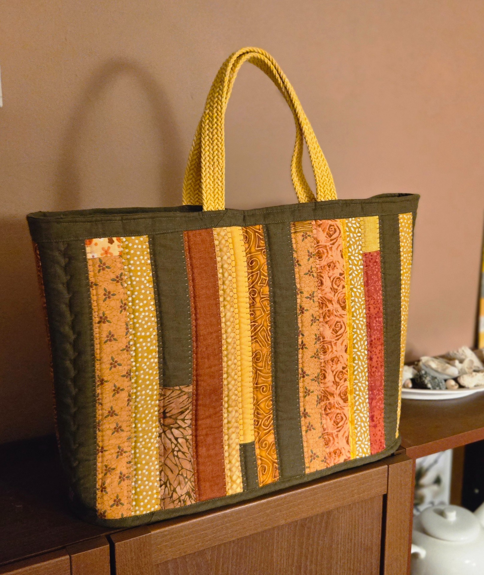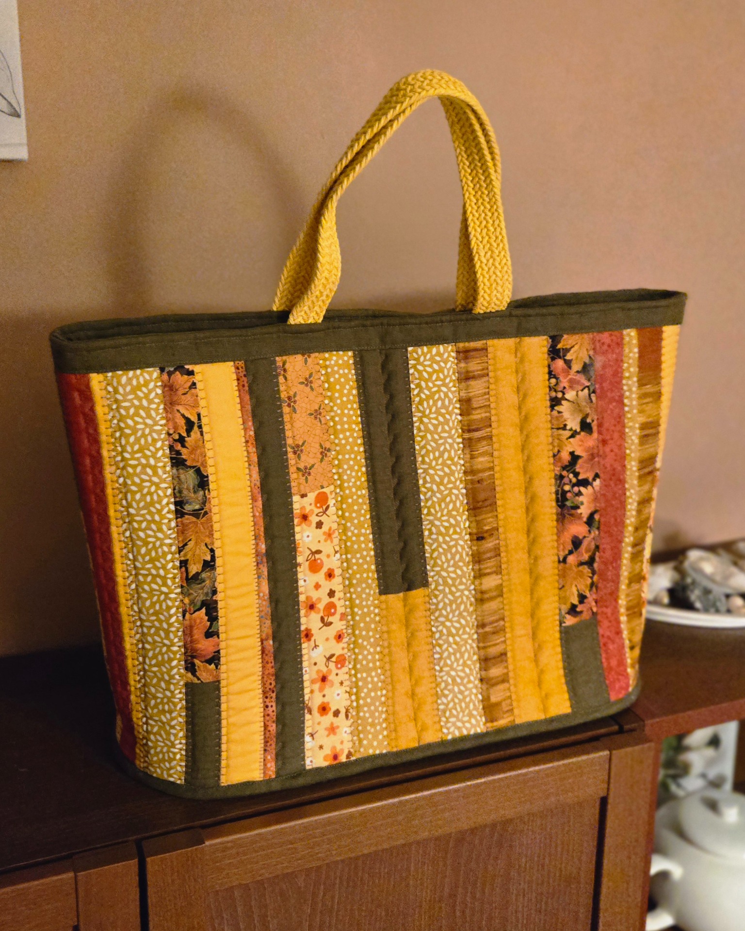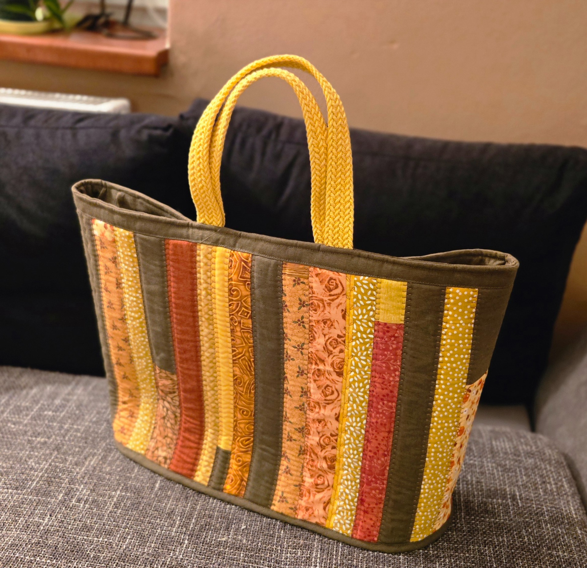 Tento kurz je určen pro pokročilejší švadlenky. Taška je sešívaná z kousků látek, prošitá, uvnitř podšívka s kapsou a na uzávěr.